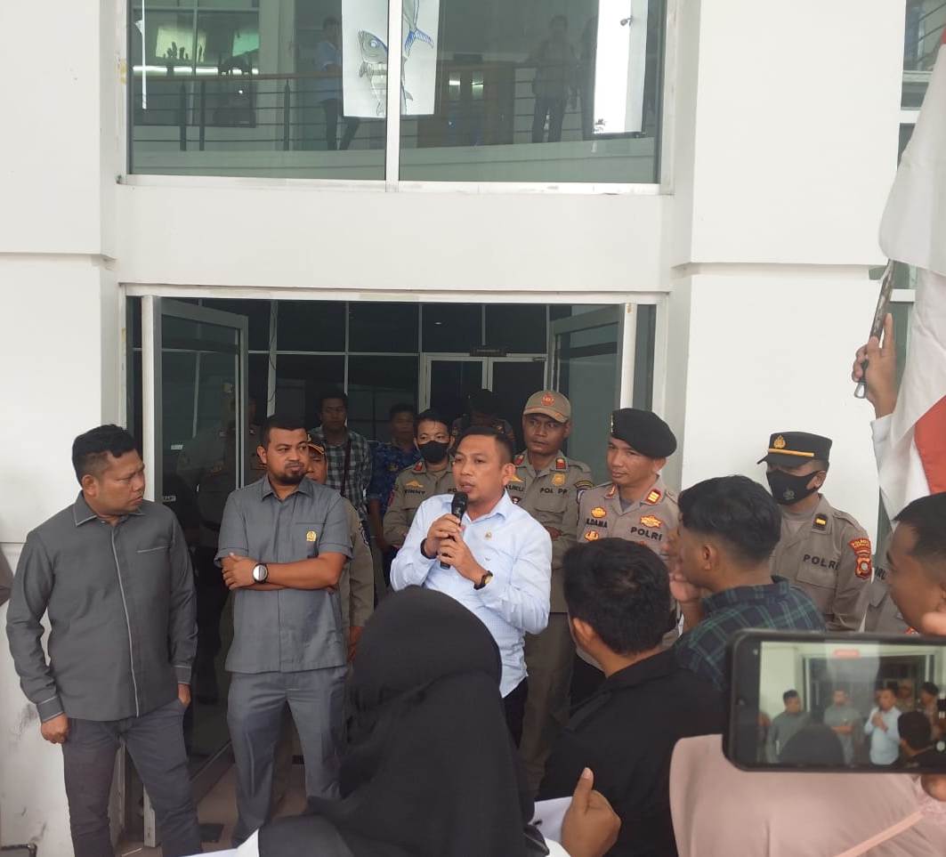 Ketua Komisi IV, Moh. Ikbal Al-Idrus, didampingi anggota Moh. Abd. Ghalieb Lahidjun dan Hamzah Muslimin, dan Gubernur Gorontalo , Gusnar Ismail menerima langsung perwakilan massa aksi yang dipimpin Ramli Poloso.