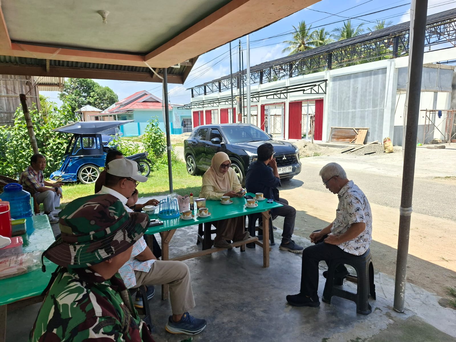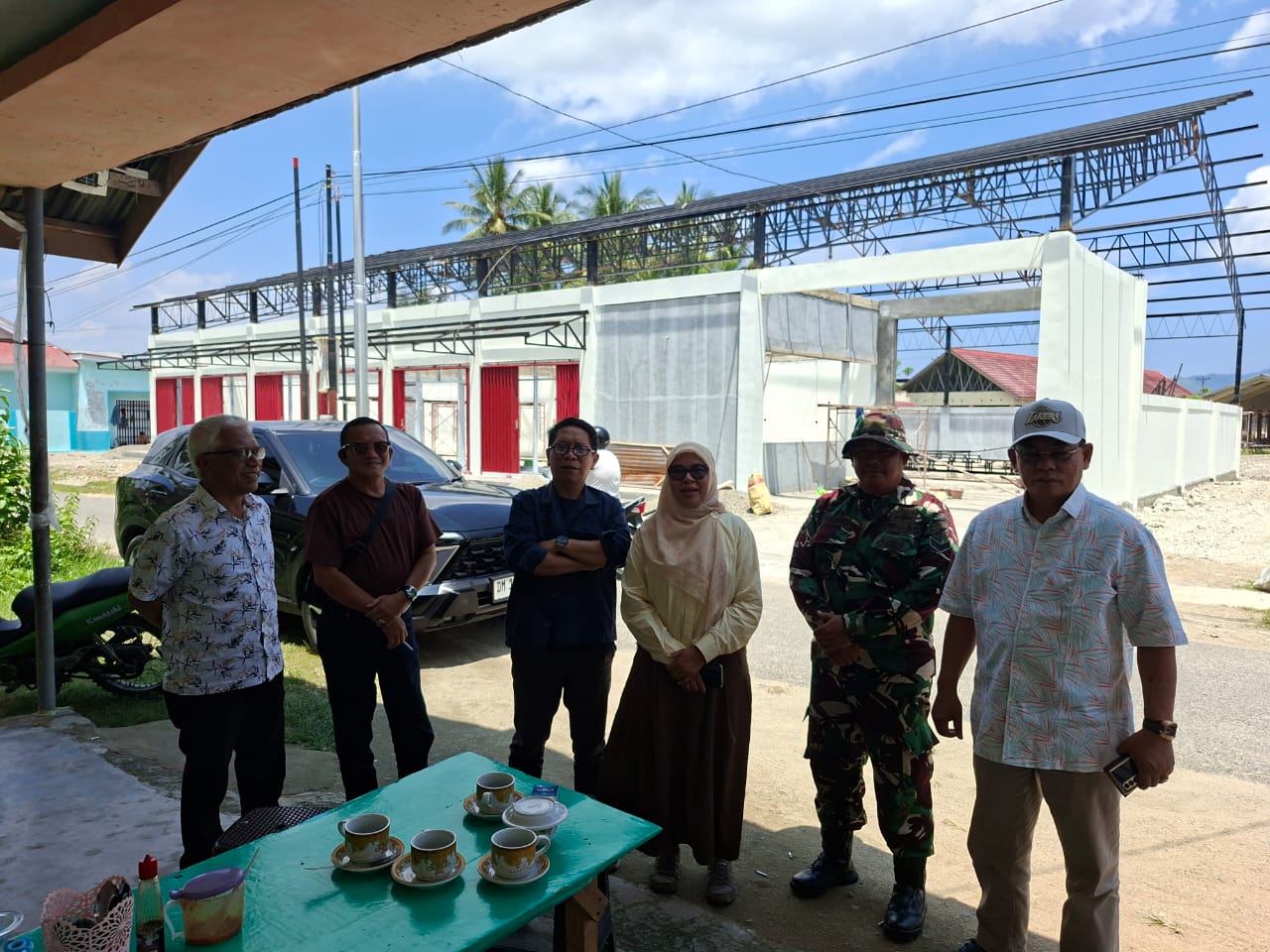 Di lokasi, rombongan diterima oleh Sertu Sutiono selaku Babinsa Koramil 1315-01/Telaga yang juga bertindak sebagai pengawas lapangan pembangunan KDMP, bersama Rusli Olii sebagai pengawas konstruksi bangunan.